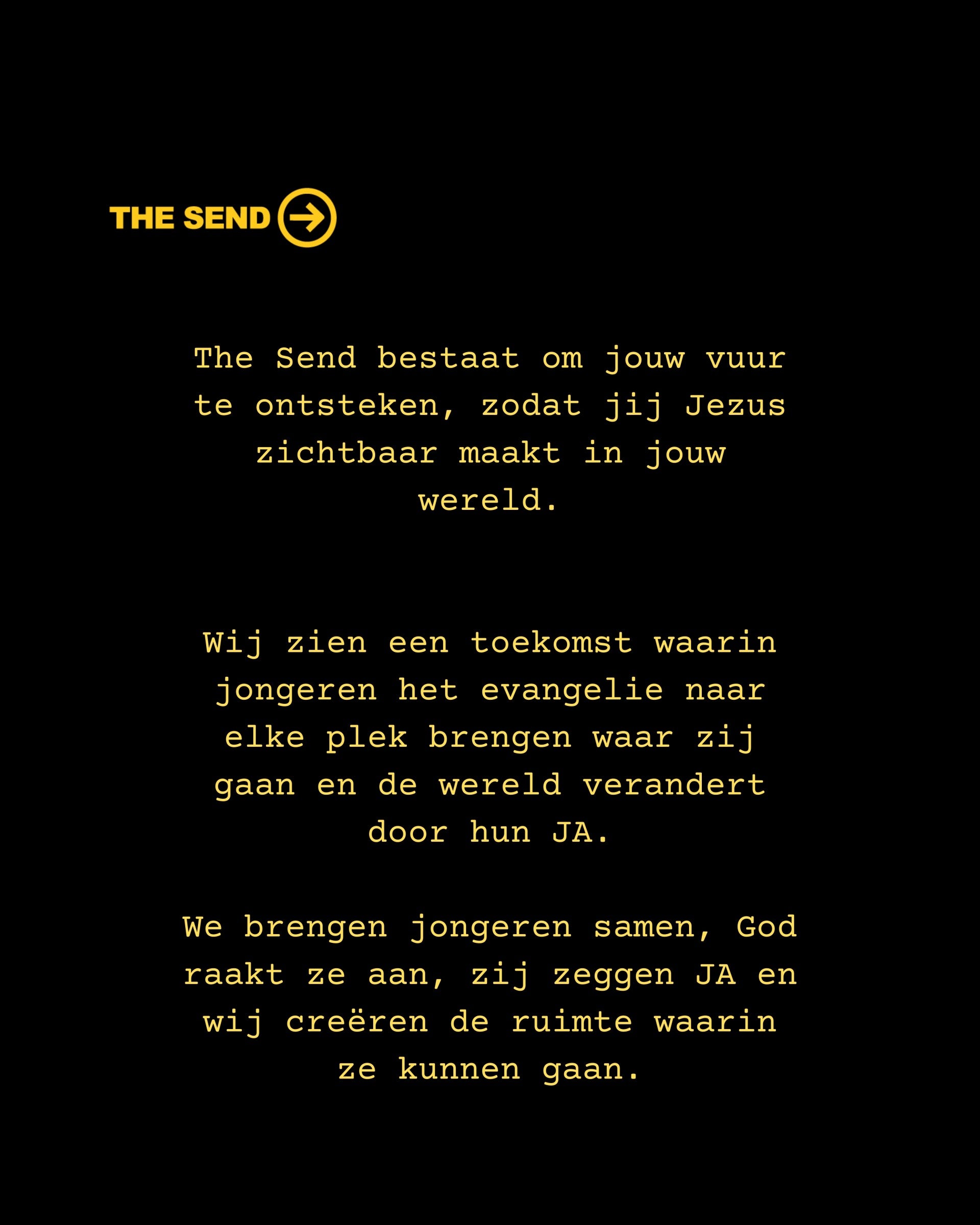 Het besluit om THE SEND naar Nederland te brengen kwam voort uit gebed en spreken van God. De droom ontstond om op te staan in dezelfde geest als Billy Graham, wiens bediening begon met een eenvoudig gebed van overgave.